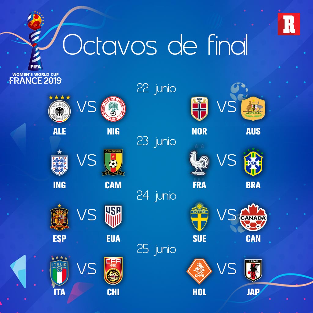 Este es el calendario con los horarios de los partidos (hora colombia) de los octavos de final del mundial femenino de fútbol, que se disputa desde el 20 de julio.